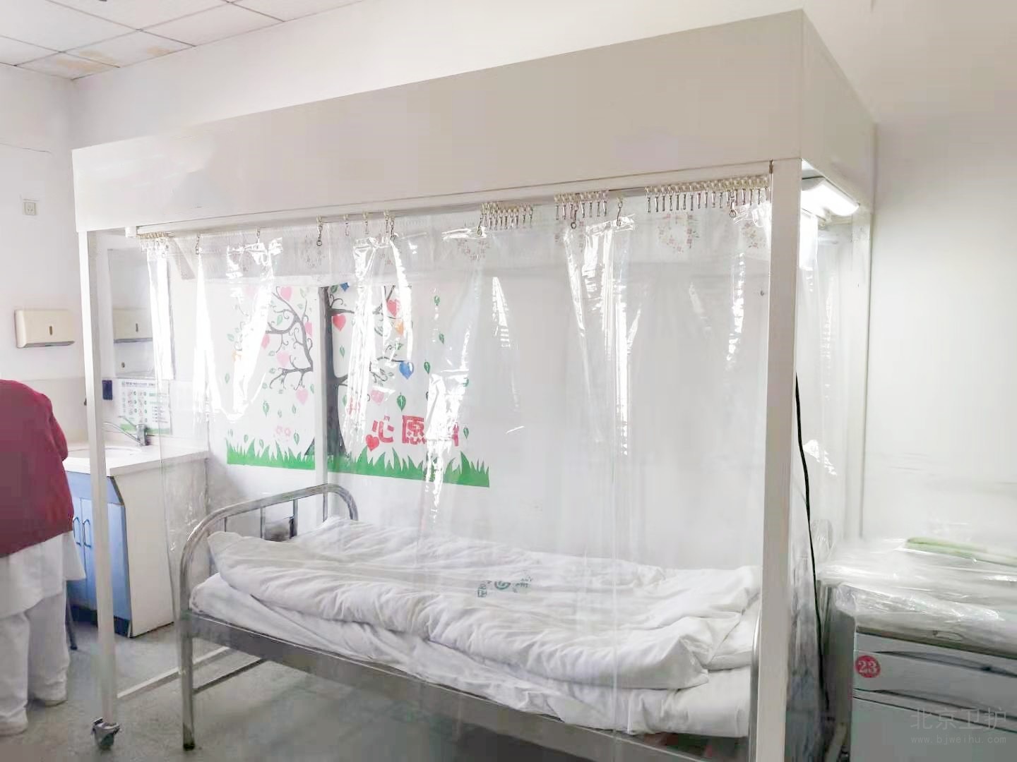 層流床罩采用純物理過濾技術,不對人體和環境造成任何破壞,即可使罩內空氣達到百級凈化級別,有效降低低免疫力人群受外界感染的風險。
